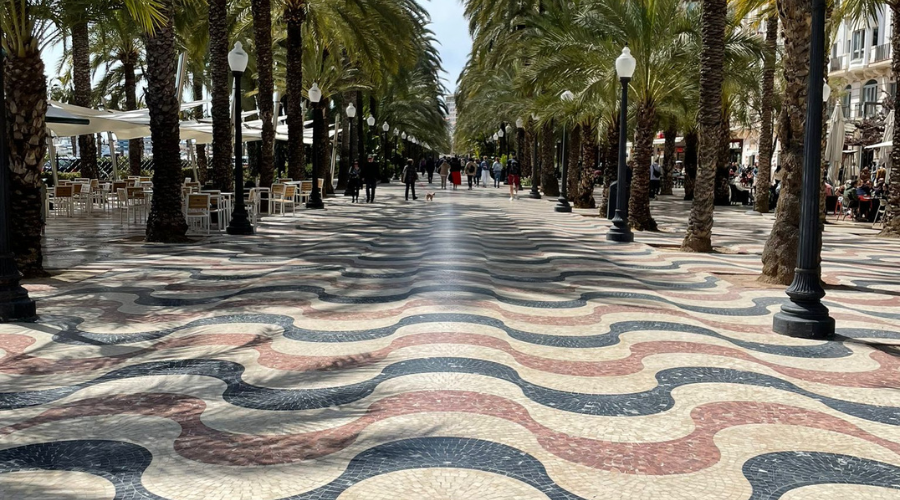Besides the Castle of Santa Bárbara, another important touristic attraction is the Esplanade of Spain, a passage parallel to the port, built during the first half of the 20th century with wavy mosaic of red, blue and white colours.