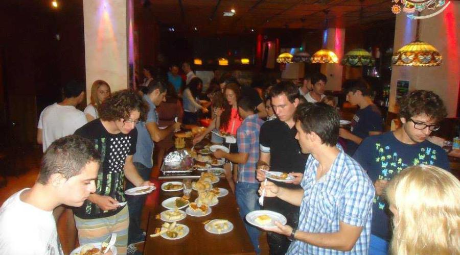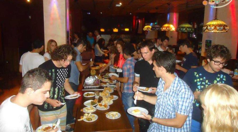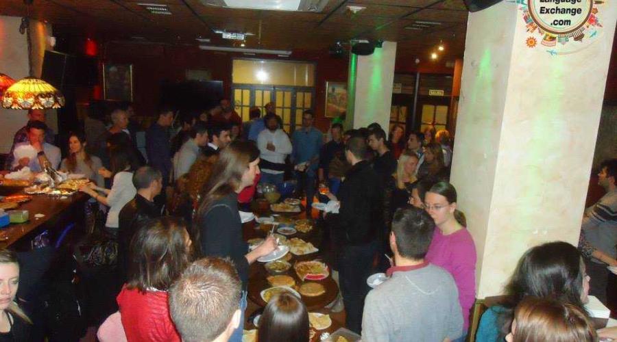 We meet 10 mins before of the starting time, we are gonna put all our dishes on a big table
